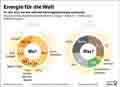 Primärenergieverbrauch (PEV) weltweit in Exajoule (EJ)* Anteile der Primärenergieträger am PEV in % (rundungsbedingte Differenzen) Abk: Mineralöl, Erdgas, Kohle, Kernkraft, Erneuerbare Energien |