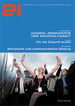 Themenheft: "Jugend, Demokratie und Nachhaltigkeit" Zeitschrift "21 - das Magazin für zukunftsfähige Bildung", Nr.1/ 2003 Aus dem Themenschwerpunkt: - Jugend heute - Engagement für eine entgrenzte Politik - Demokratie lernen in der Schule - Aktionstag für mehr Toleranz, Zivilcourage und Solidarität - Vom Energiesparen zum Agenda-Projekt - Materialtipps zum Thema Weitere Themen: - Forum für zukunftsfähige Bildung: Lebensraum Schule; Umweltkommunikation für Jugendliche im Hörfunk - Netzwerke: Umweltschule in Europa; Globe; Umweltzentren; Globales Lernen Kostenloses Probeexemplar beim oekom-Verlag Inhaltsübersicht /Bezug / Kontak/ (oekom-Verlag) Archiv: ältere Ausgaben der Zeitschrift ab 2001 |