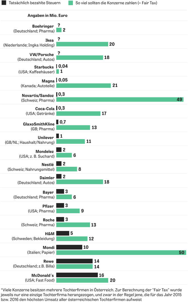 Österreich – Steueroase für Konzerne Eine kleine Tabaktrafik zahlt in Österreich fast genauso viel Steuern wie ein milliardenschwerer Industriekonzern. Die großen Unternehmen werden vom Finanzministerium umarmt, die kleinen zur Ader gelassen. zum externen Volltext