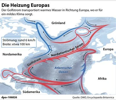„Der Weltklimabericht muss hier revidiert werden“ Der Zusammenbruch des Nordatlantik- und Golfstroms (AMOC) ist von deutschen Forschern neu berechnet worden. Ein Kälteeinbruch für Europa ist für sie wahrscheinlicher denn je. LK(Nordatlantik-Strom); zum externen Volltext